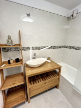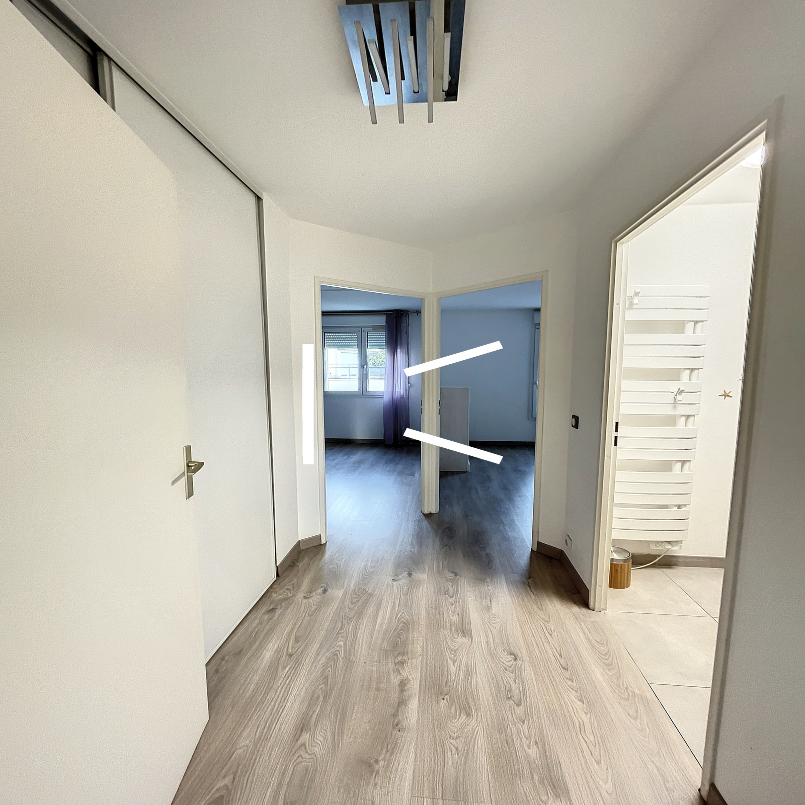 Cet appartement traversant de type F3 de 69 m2 est composé d'une entrée, d'une cuisine aménagée ouverte sur un vaste séjour, d'un toilette séparé, une belle salle de bains et de deux chambres.