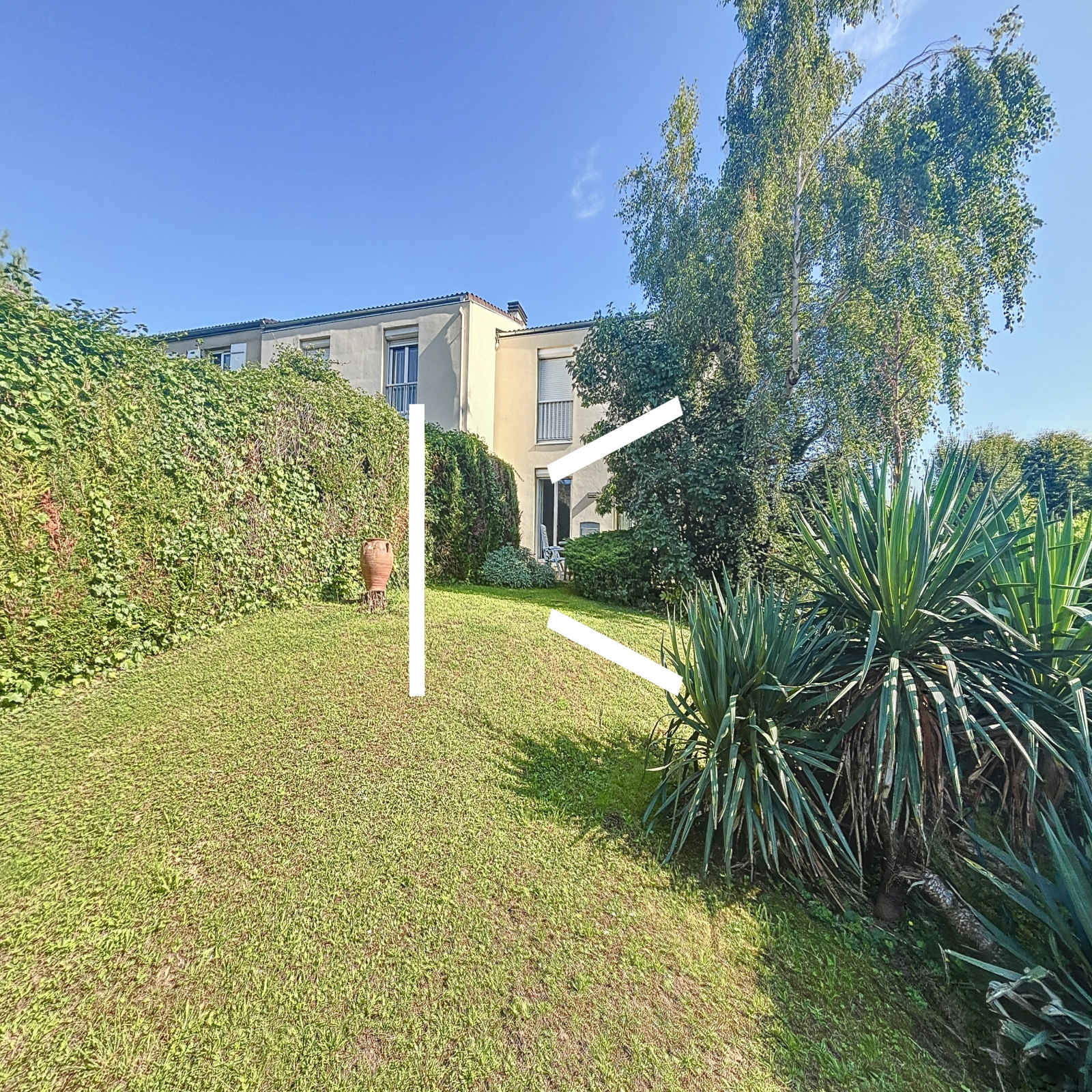 L'espace intérieur est composé d'une entrée avec coin rangement, une cuisine aménagée et équipée et un double salon donnant sur jardin.
