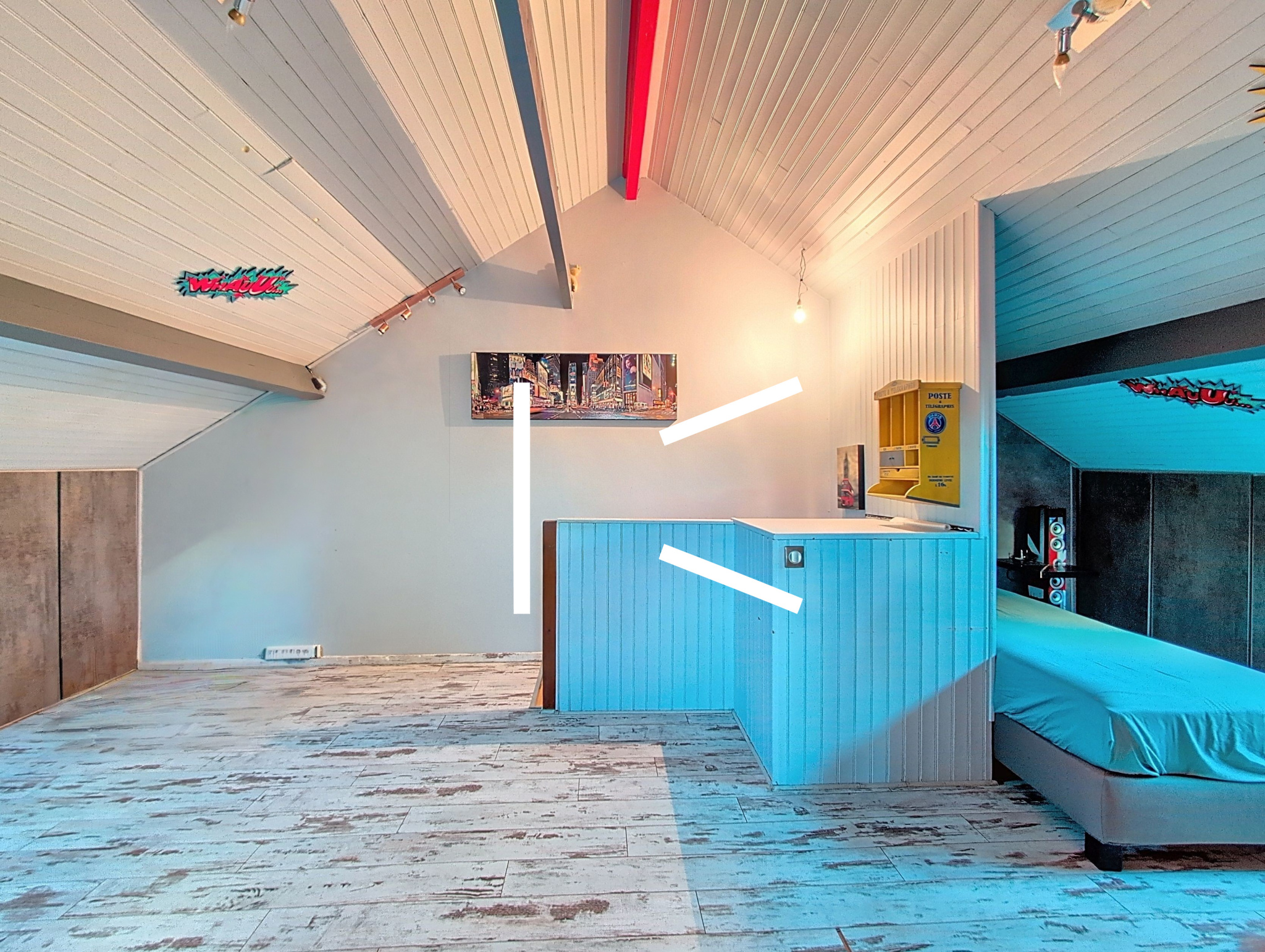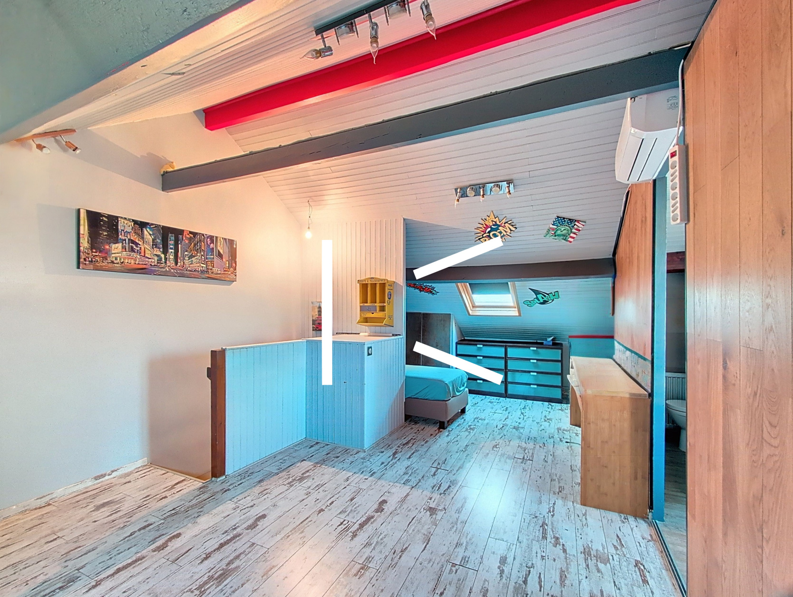 Le 2ème étage dispose d’un vaste espace aujourd’hui en deux zones distinctes avec salle d’eau, parfait pour aménager 1 à 2 chambres supplémentaires selon vos besoins.